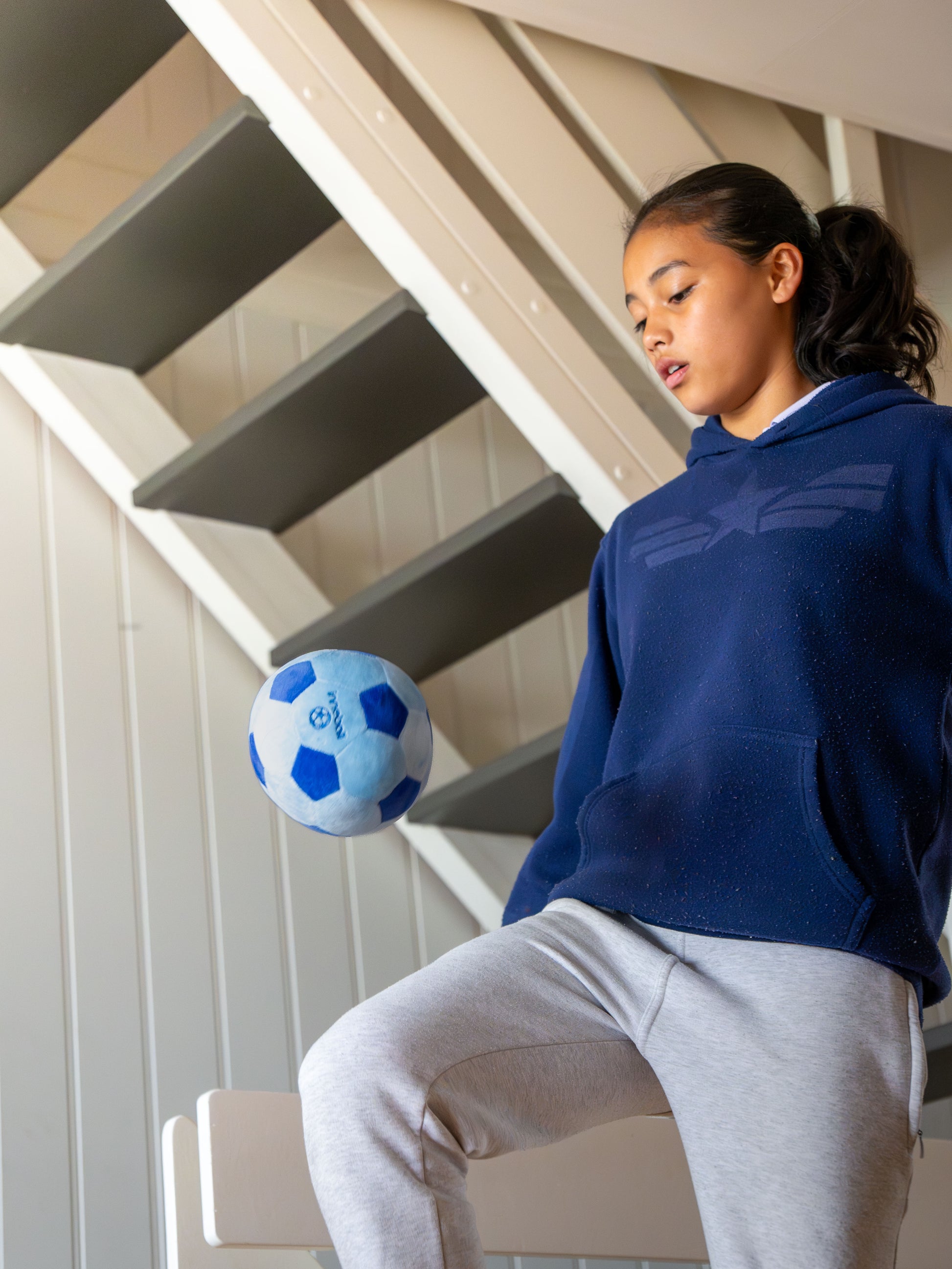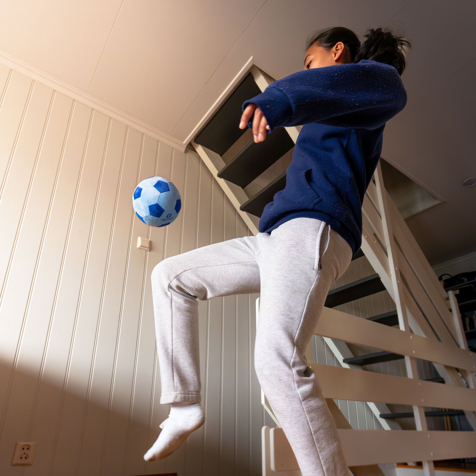 Spill hvor som helst, uten å bekymre deg for møbler eller å være en bråkete nabo. Det spesielle lette og sprettende fyllet sørger for en både lydløst og morsom fotballkamp!